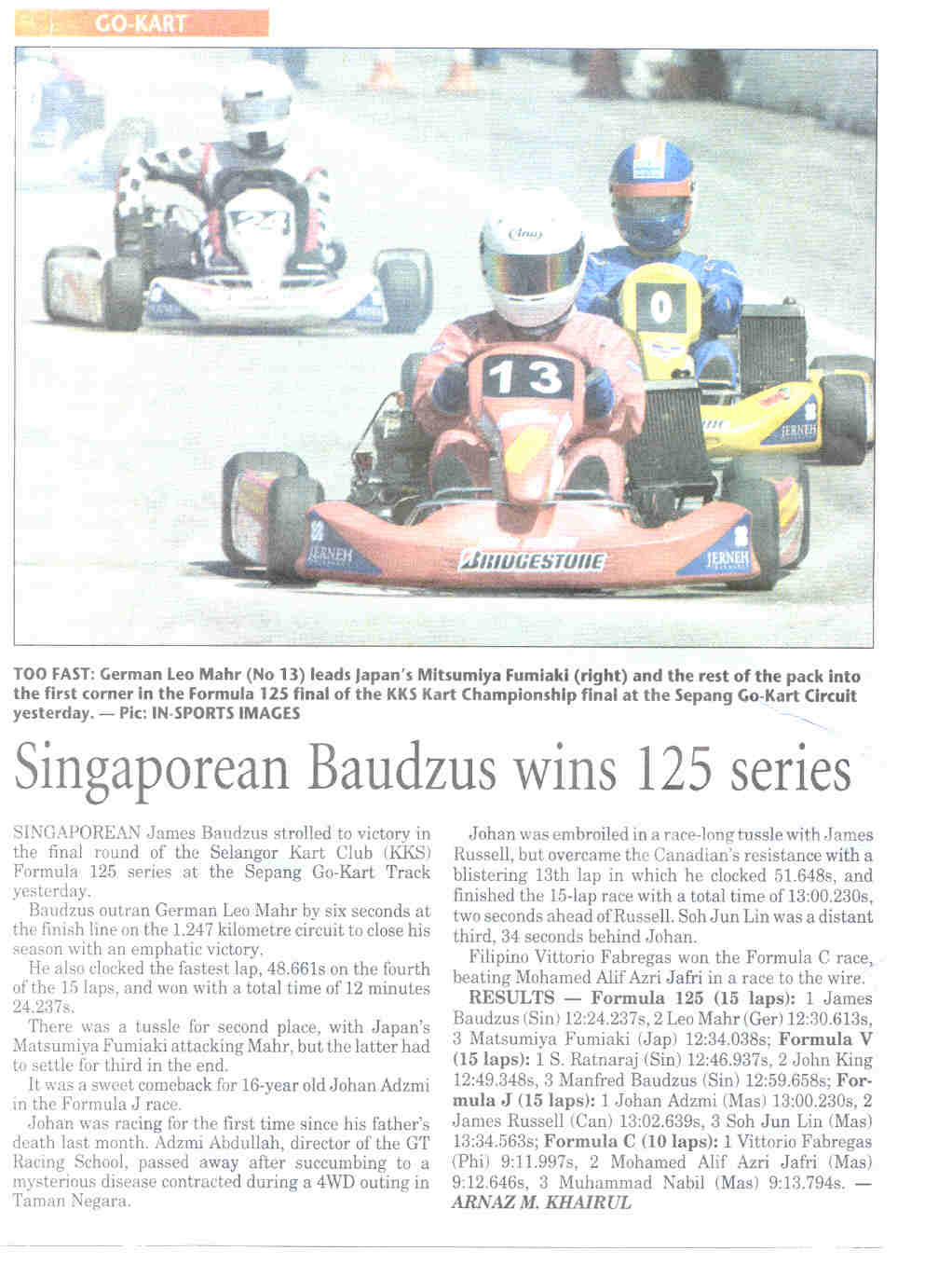 shortly. After the 5th round of the 2003 KKS Club championship which was held at Sepang on the 28th of December, The results were featured in The New Straits times. By clicking on the article you can get it full size. to get results from this or another event go to the results page which now has up-to-date links to all results sites.
